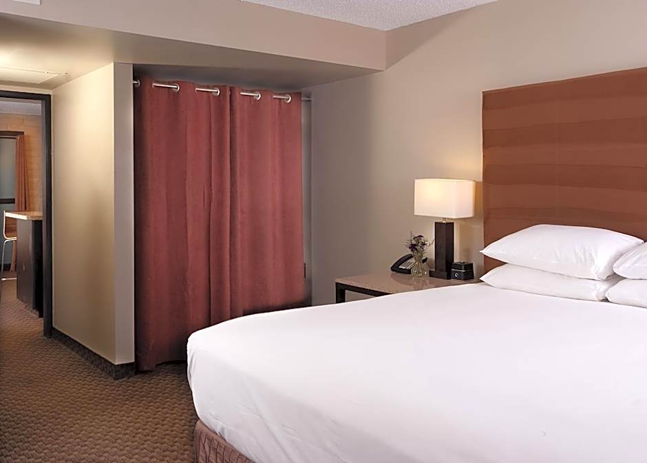 This room includes a granite-top wet bar, small refrigerator and microwave. The spacious bathroom offers a lighted make-up mirror, hairdryer and luxury bath amenities.